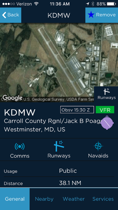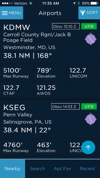 AOPA GO uses your device’s physical location to identify the nearest airports, heliports, and seaplane bases. You can see all the most critical information about each at first glance or drill down to more detailed information with a single tap of the screen. The app also allows you to search for an airport by name, ident, or location and save your favorites for quick access. All the information you need about an airport is readily available—from communications and operations to fuel providers and other services available on the field and nearby.