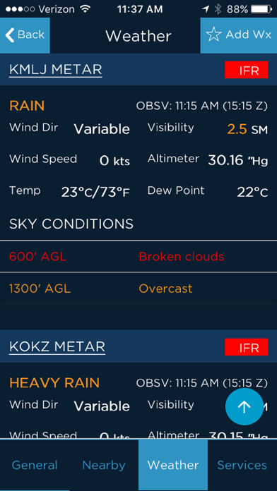 AOPA GO Weather is designed to provide “best of breed” aviation weather information by compiling the best sources available into one resource. With information and images from Jeppesen, Aviation Digital Data Service (ADDS), and the National Oceanic and Atmospheric Administration (NOAA), pilots get a complete picture of the weather that could affect their flight. Quickly review the METARs and TAFs closest to your location right on the main Weather screen, or choose from a gallery of national or regional weather chart images. You can also see current and forecast weather conditions along your route of flight using the Route Weather feature. Adverse weather conditions are color-coded based on severity to be more noticeable on METAR and TAF reports.