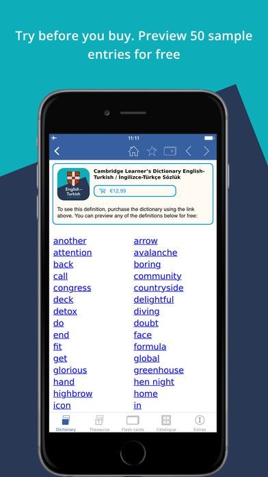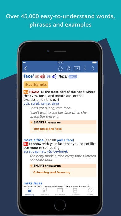 Perfect for Turkish learners of English, this Cambridge Learner’s Dictionary app offers audio pronunciations in both British and American English. Developed using the unique Cambridge Learner Corpus of written and spoken English, the app comes with tips on how to avoid typical errors made by Turkish learners and a thesaurus to help you build your vocabulary.