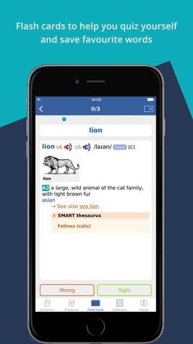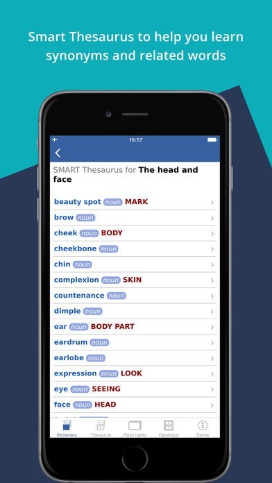 • Extra app features let you create flash cards to quiz yourself, save favourite words, and save your search histories.