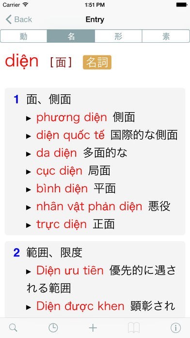 ベトナム語の意味だけでなく例文も掲載されているので、実践的な使い方を学ぶことができます。同義語や反意語も紹介されているので、単語の意味をより深く理解することもできます。
