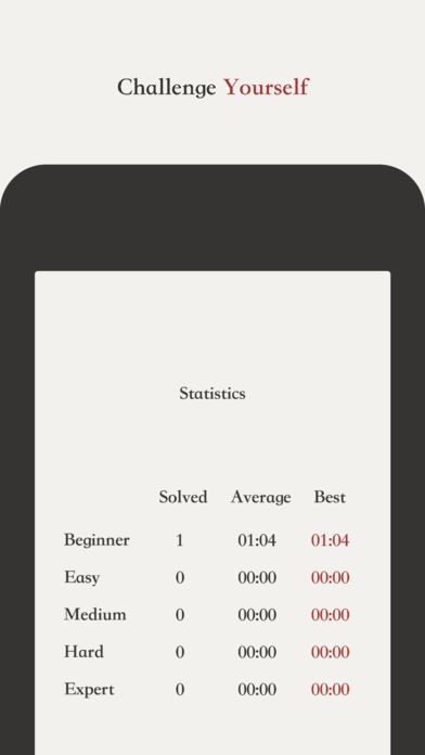 アプリは5つの難易度から自分に合ったレベルを選べます。一番易しいレベルだと数分で解けるはずですが、難しいレベルになると長時間考えてもわからないようになっています。