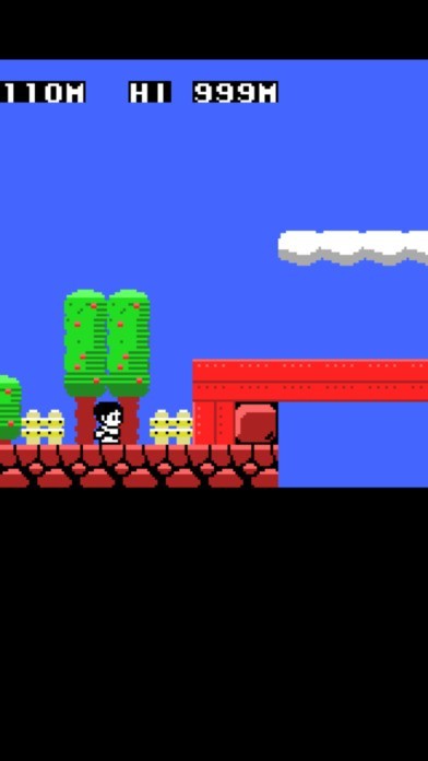 ファミコン風のビジュアルがレトロな雰囲気で魅力の仕様、障害物を回避しながらゴールを目指すアクションランゲーム