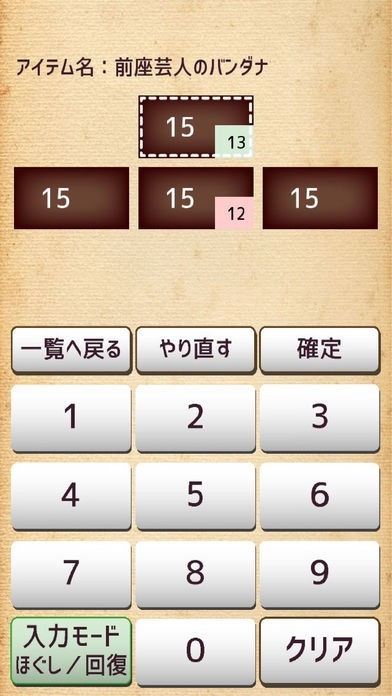縫いやほぐし、回復などのダメージ値を計算機のように