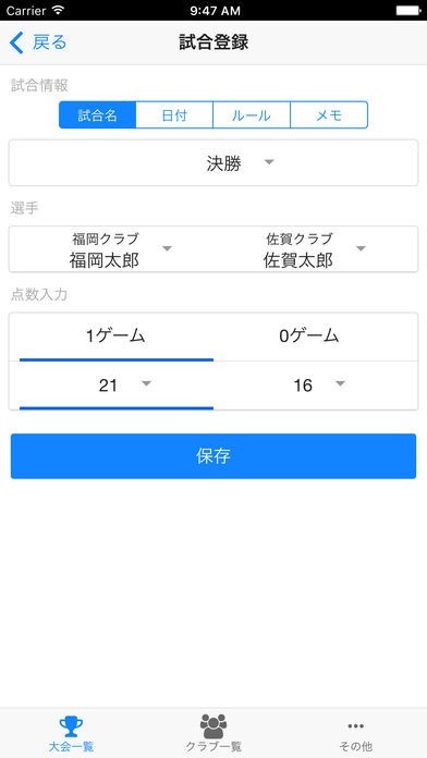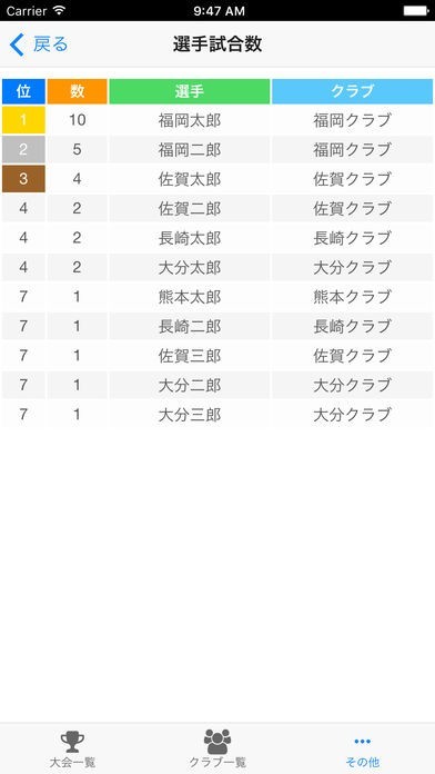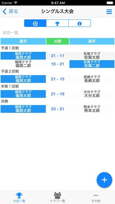 App Storeより引用大会毎に試合結果・成績を記録していくことができます。