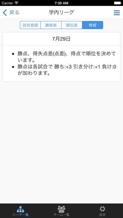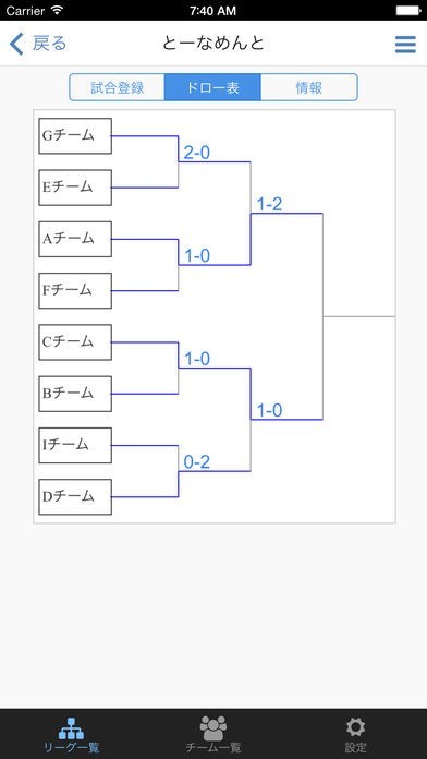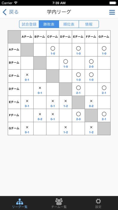 サッカーリーグ作成のスクリーンショット