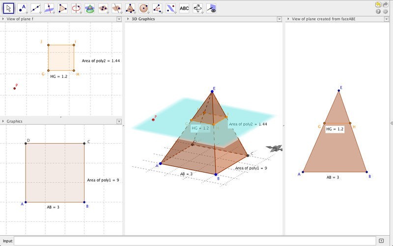 GeoGebra (www.geogebra.org) is free dynamic mathematics software for all levels of education that brings together geometry, algebra, spreadsheets, graphing, statistics and calculus in one easy-to-use package. Interactive teaching and learning resources created with GeoGebra can be shared and used by everyone at www.geogebra.org