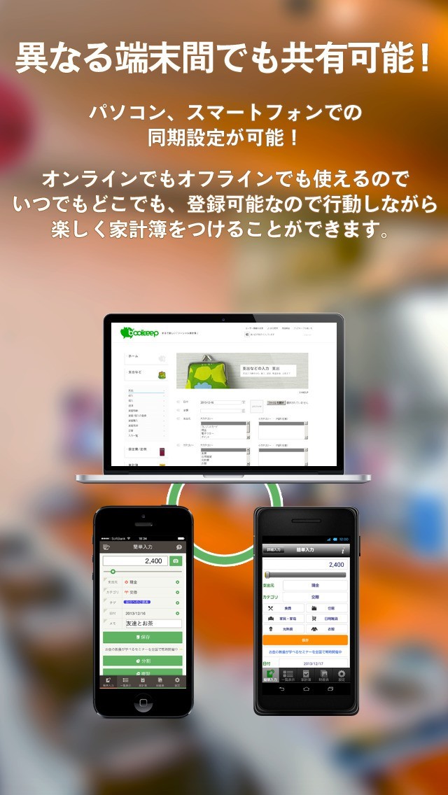 便利機能を多数搭載!デバイスの同期でいつでもどこでも家計簿管理!