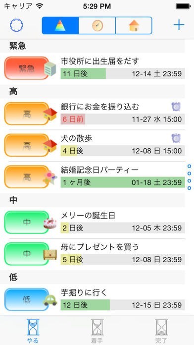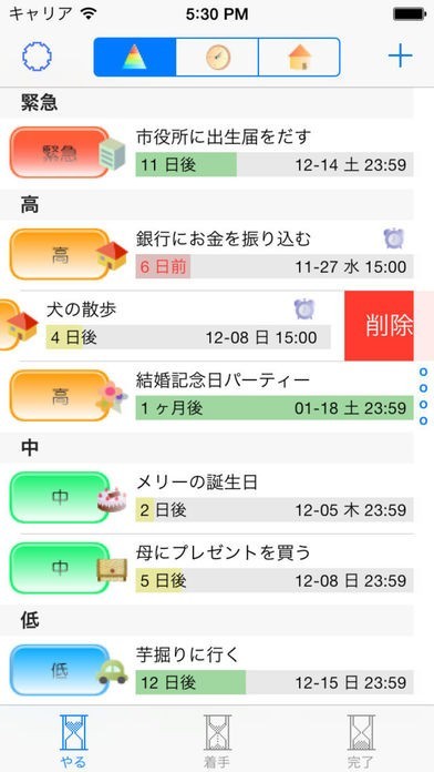 アイコン、重要度、期限の設定で管理しやすい