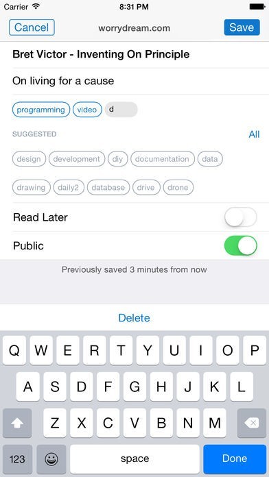 他のアプリとのブックマークの共有機能がこのアプリの強みです。ChromeやInstapaperのようなアプリとブックマークの状態を共有でき、ブラウジング時のストレスが軽減されます。