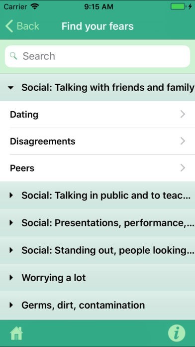 •Browse a library of over 500 activities that other people have found help to master a wide variety of fears and worries including: