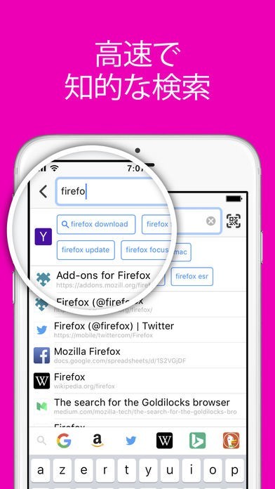 「Firefox」はネットサーフィンを楽しむ学生さんに便利なウェブブラウザアプリです。 定期的に閲覧するウェブサイトはブックマークに登録しておくとスピーディーにアクセスできるようになります。 タブ機能にて複数のウェブサイトを開き、調べ物を行うといった時にも便利です。 パスワードを記憶する機能が付いており、一度記憶させておけば入力しなくてもログインできるようになります。 オンラインバンキング、証券口座などを利用している方にも便利なアプリです。 ネットサーフィンを楽しむ時に気になるのが個人情報です。 このアプリにはプライベートブラウジングモードが搭載されており、履歴を記憶させないように設定する事が可能です。