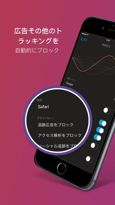 プライバシー保護機能搭載。広告やトラッキングをブロックし、個人追跡データをシャットアウト!