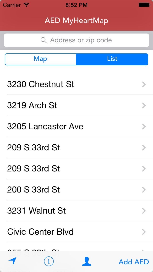 If someone around you collapses and stops breathing, call 911, start CPR (push hard and fast in the center of the chest). Send someone to get an AED. Using the app, you can look at the map feature to find AEDs in the your area. You can also or enter an address or zip code to browse AEDs in the vicinity.