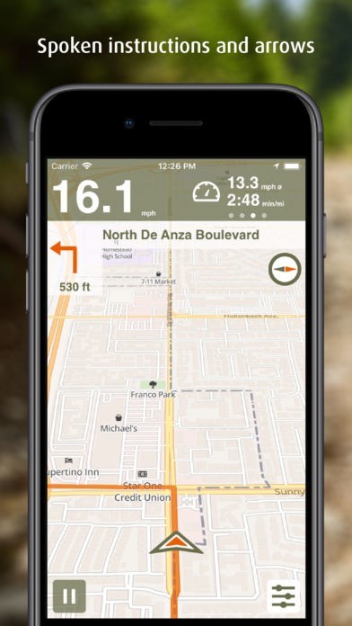 Speed, average speed, distance traveled and distance to your target always in view.