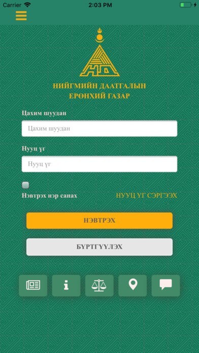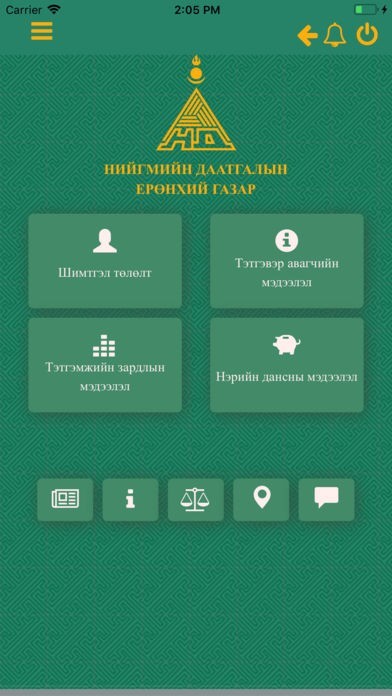App Storeより引用Даатгуулагч та энэ програмыг ашиглан өөрийн Нийгмийн даатгалд даатгагдсан байдал, авсан зардал, тэтгэвэр, тэтгэмжийн талаар болон, Нийгмийн даатгалтай холбоотой хууль, тогтоомжийн талаар мэдээлэл авах боломжтой.
