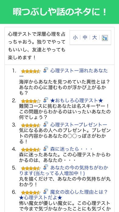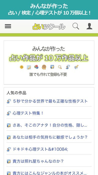 「占いツクール」は、占いにはまっている方がオリジナルの占いを楽しむことができるアプリです。プロの作成したアプリとは違った視点でアプリが作成されているので自分の状況にあった占いが見つかります。また、それぞれの占いが五段階で評価されているので人気の占いが見つけやすくなっています。自分好みの占いを探してみましょう。