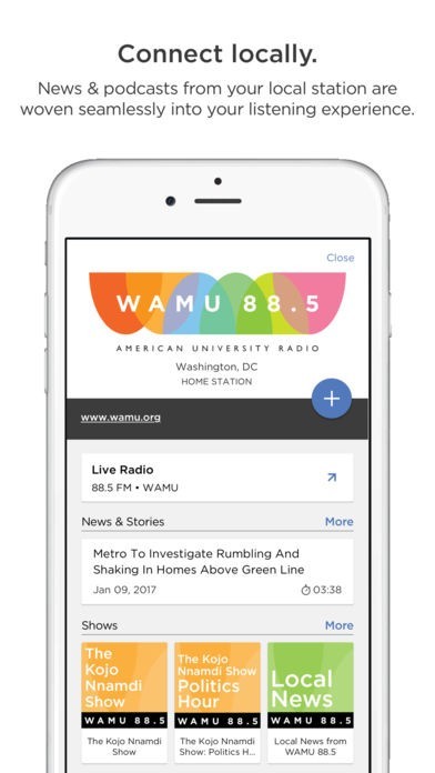 Even with the breadth of public radio at your fingertips, you won’t lose touch at home. Local news and podcast episodes are woven seamlessly into your listening experience. Local stories, locally reported, are delivered daily. Community is everything.