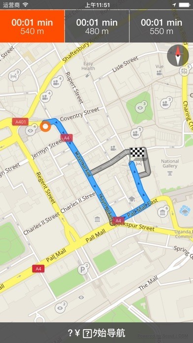 - 距離の表示と到着時間と歩行者、自転車や車の場合は常に最短で安全なルート。