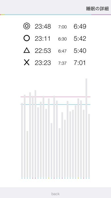 App Storeより引用自分がいつ、どのくらい寝ているかをシンプルに管理するソフトです。睡眠の傾向をつかみ、自分に最適な睡眠を見つけるのに役にたてていただければ幸いです。