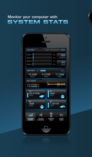 2.System Stats – monitor your vital system information, such as CPU load, memory and hard drive usage, and more.