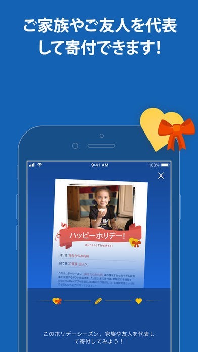 ShareTheMealは、スマホ画面をたった1回タップするだけでお腹をすかせた子どもに食事を届けることができる国連WFPのチャリティアプリ。飢餓は、HIVとマラリアと結核をあわせたよりも、もっと多くの人々の命を奪っています。でも幸いなことに、飢餓は完全に解決できる問題です! 世界中のスマホの数は、飢えた子どもたちの数の20倍。あなたのご支援があれば、私たちは飢餓のない世界を実現する世代となれるんです!