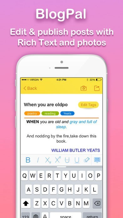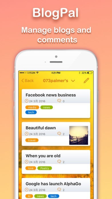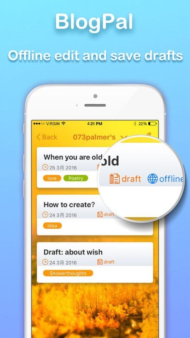 「BlogPal」はBloggerへの投稿・ブログの管理ができるアプリです。下書き保存が可能なため、思いついたことを忘れずにスマートフォンに書き留めておいて、後ほど編集し投稿することができます。