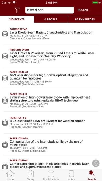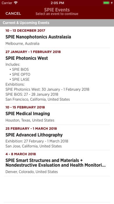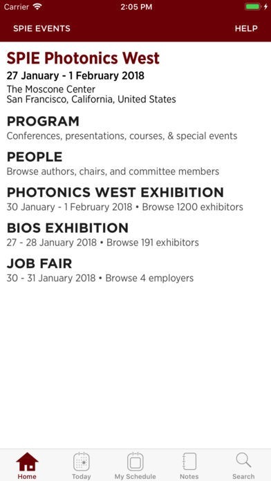 App Storeより引用Hold the program and exhibition guides for all current and upcoming SPIE conferences and exhibitions, including SPIE Photonics West, SPIE DSS, and SPIE Optics + Photonics, in the palm of your hand.