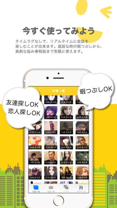 「ON TIME・チャット-登録無料ひまトーク・出会い系チャットアプリ」は、チャットを通じて友達との出会いを見つけることができるアプリです。「ON TIME」は、ご近所検索を利用することができ、自分が住んでいる場所の近くにいる友だちを発見することができます。それだけではなく、「ON TIME」は、匿名でも問題ありません。さらには、プッシュ通知機能などもついているので、なにか変化が起こった場合にはすぐに気がつくことができます。