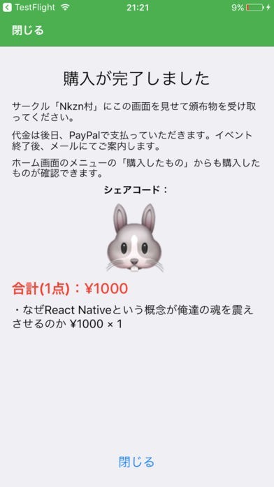 ・参加サークルと電子決済(QRコードをスキャン)で頒布物のやり取りを行うことができます。スキャン後に決済結果画面を相手に見せてください。
