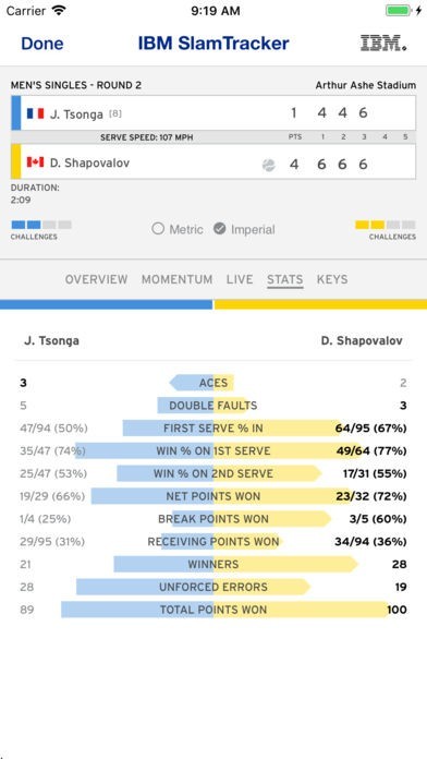 全米オープンテニスの公式アプリならではの情報が満載!