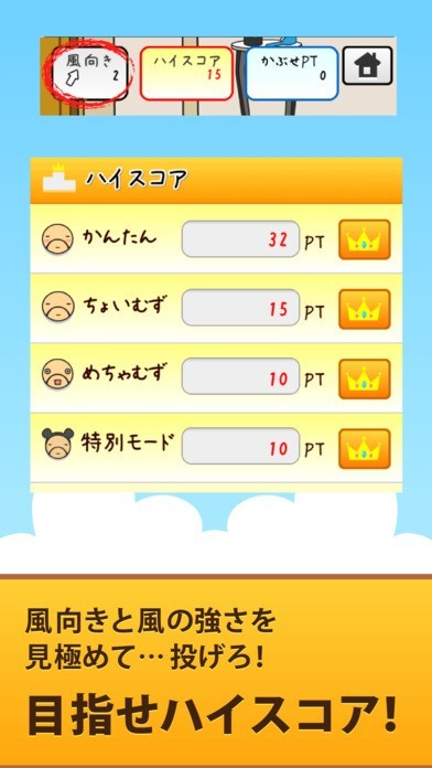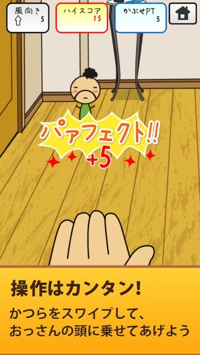 風の向きや強さを考えながらスワイプ操作でかつらを投げるシューティングゲームアプリ!