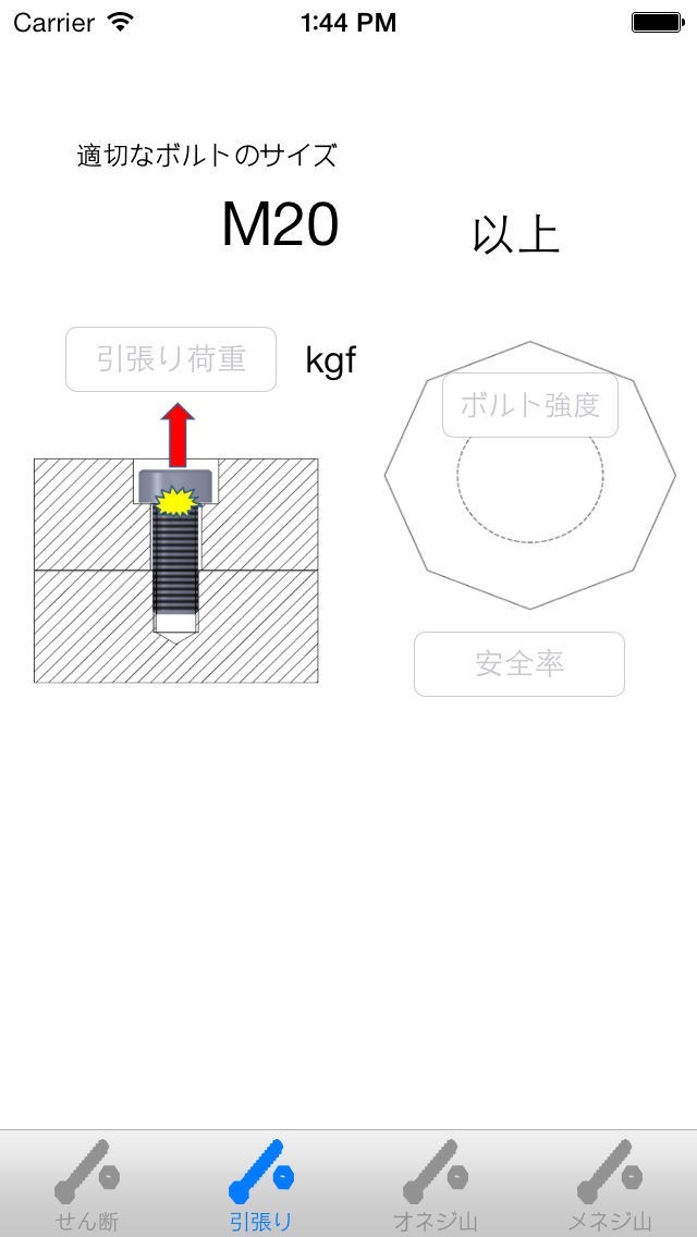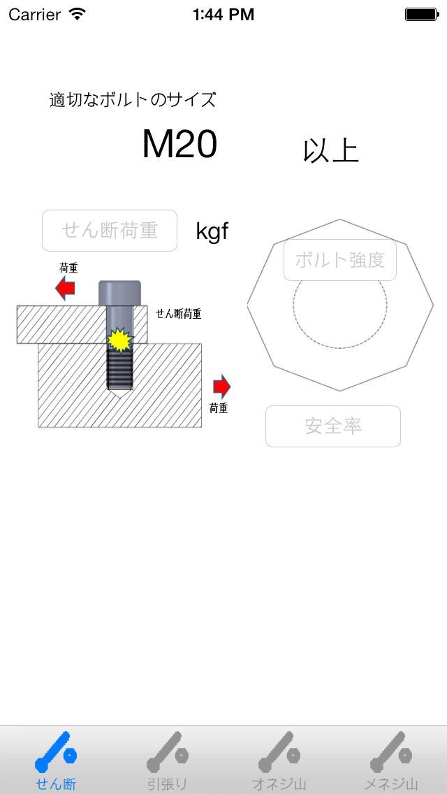 App Storeより引用・当アプリは製造現場で用いるボルトの強度計算を行うことができます。