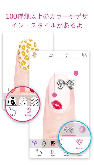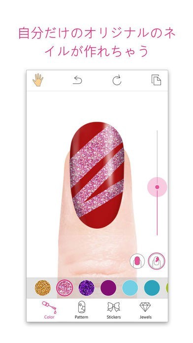 タップ 1 つで可愛いネイルが試せたり、自分だけのオリジナルのネイルデザインがかんたんに作れるよ。アプリだから、面倒なりムーバーやサロン通いも必要なし!何度でも新しデザインが試せるよ。