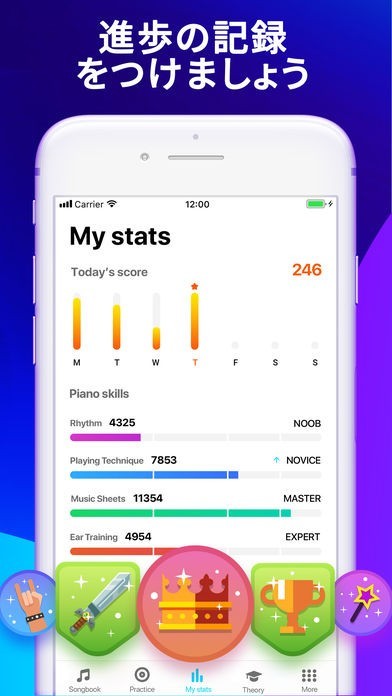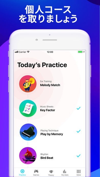 通学中、通勤中、移動中とどんな場所でもイヤホンがあればそこはピアノホールになります。まずは自分で好きに弾いて、課題に取り組み目標まで達せばミニゲームで遊んだりと自分のペースでしっかりとピアノを学べる素敵なアプリになっています。音楽理論も理解しながら覚えることができるので予習、復習も完璧です。