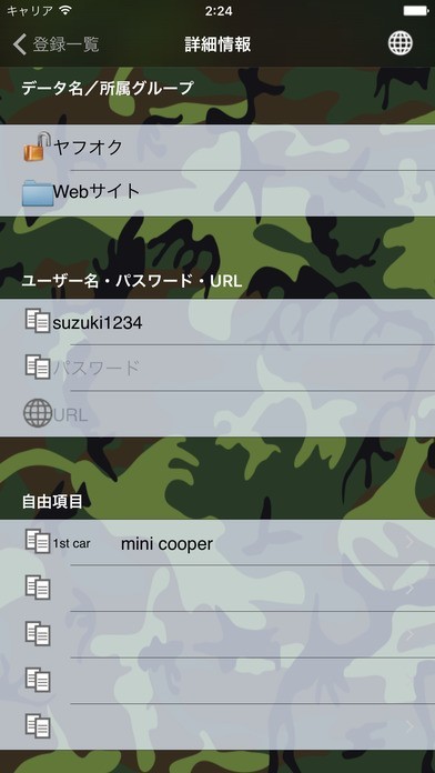 登録した内容はクリップボードへのコピーが可能。複数のパスワードも間違えずに利用できる!