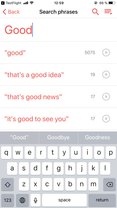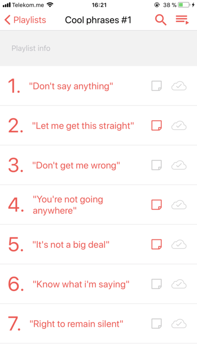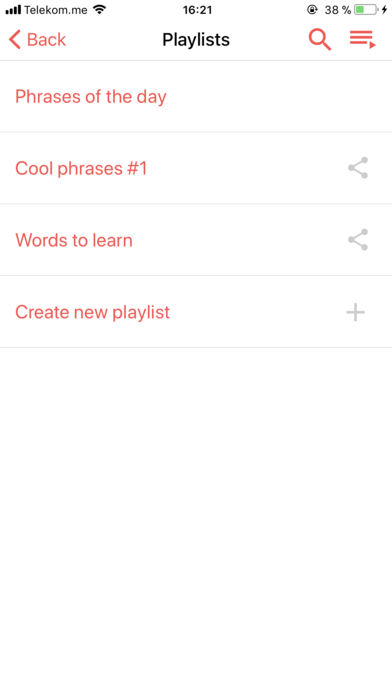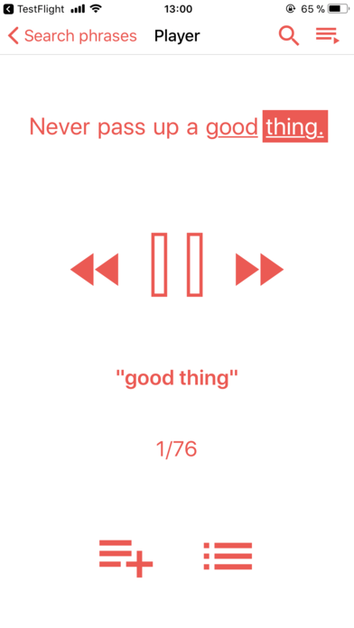 * Custom playlists - save interesting phrases and words to playlists for listening and studying.