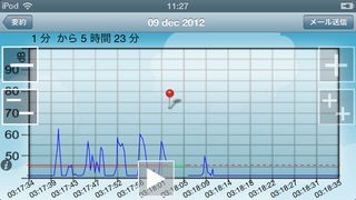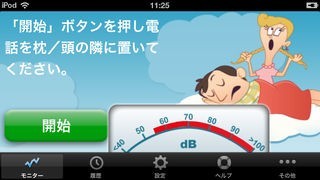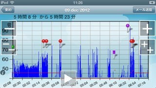 睡眠時に、どれだけ音を出したかを記録し、グラフにして表します。寝ている間に、ユーザー自身でイビキに気づくことはできませんが、スマートフォンが察知して記録してくれます。