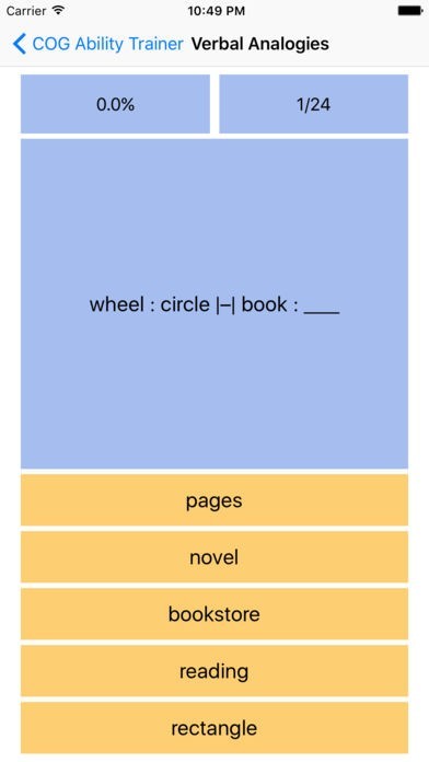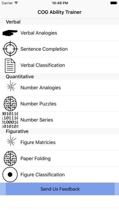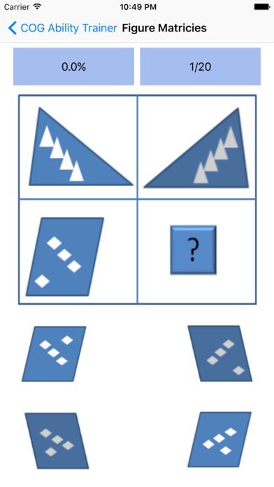App Storeより引用Updated for 2019! Train for gifted and talented testing. This app is designed to increase reasoning and problem solving skills for grade school kids. Specifically the exercises within are for mastering the COGAT FORM 7 test.
