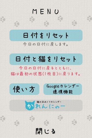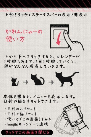 かれんにゃーは、自動で日付が変わらない、ちょっぴりアナログな日めくりのカレンダーアプリです。