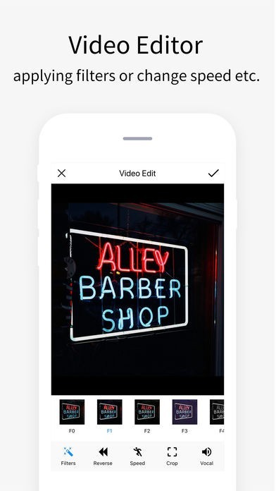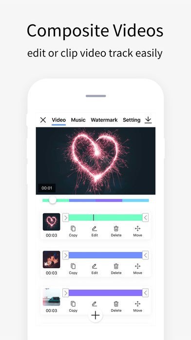 App Storeより引用Video Clips is a video editor and movie maker that you can use it to merge multiple videos easily. With Video Clips, you can composite photos or videos together, you also can edit video with multi options such as filtering, speeding, cropping etc.