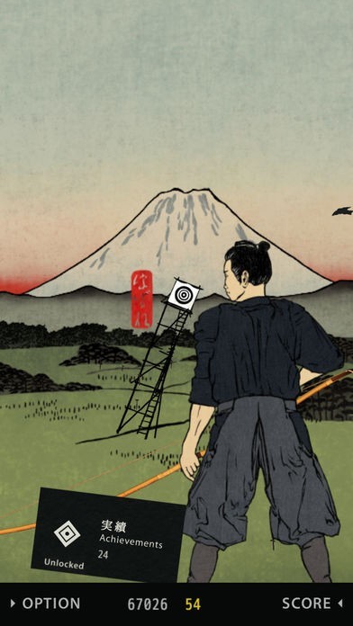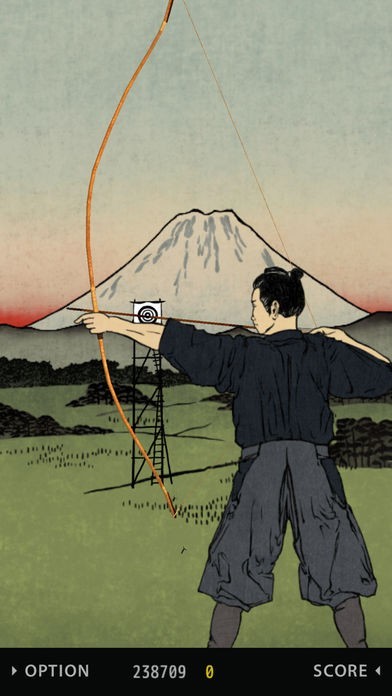 App Storeより引用弓稽古はタッチ操作で弓士を操るシューティング シミュレーションです。