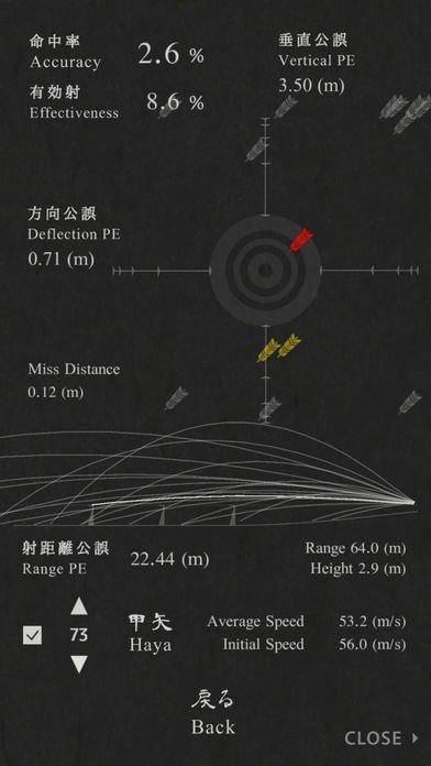 弓稽古にはあなたが矢を射る度、その情報を分析する機能が備わっています。 全てのプレイを通じた統計機能もあれば、狙う的を変えるごとにリセットされるものもあります。 また少しユニークな内容の含まれる実績に挑戦することも可能です。