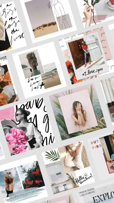 App Storeより引用Create collages in AppForType, bring together photos, fonts, images and textures. We've added more than 10 new sets with photos and images: flowers, watercolor splashes, geometric figures and textures for the background.