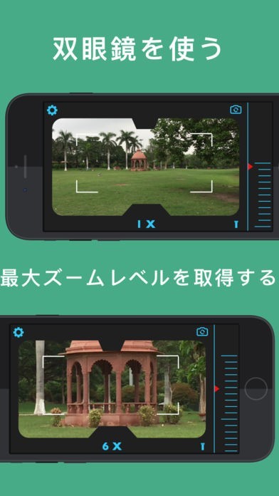 高倍率で遠くが見渡せる双眼鏡機能付き