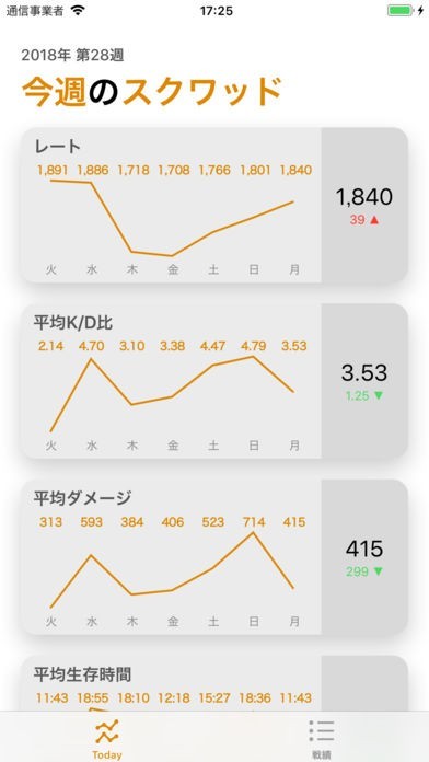 試合ごと・週間・月間レベルで自分の戦績を見つめ、自己強化に励むことを支援します。