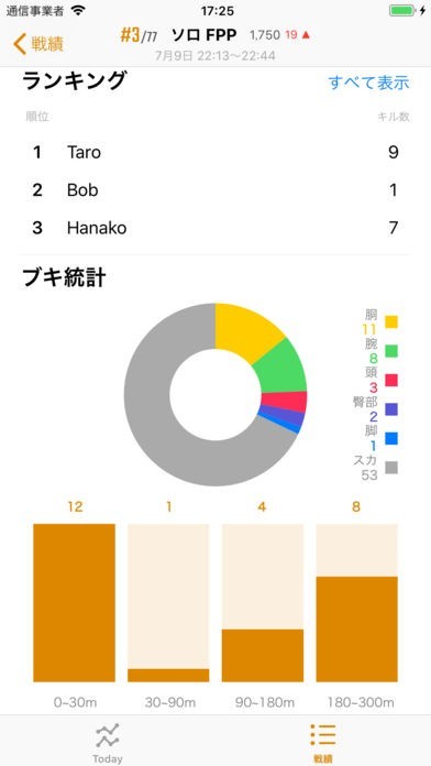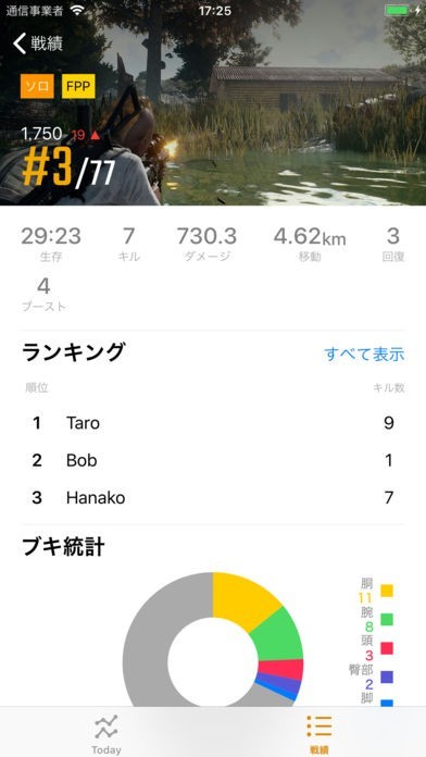 PUBGの一戦ごとの戦績を自己分析するためのアプリ。