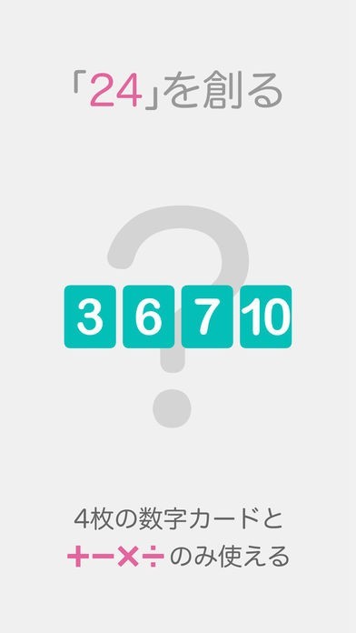 4枚のカードに四則計算を用いて24になるように計算するパズルゲーム!