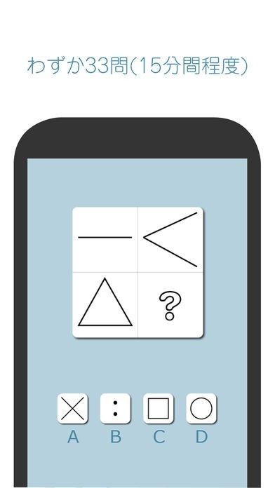 33問の図形知能指数テストに挑戦!ゲーム感覚で手軽にIQ測定が楽しめる!