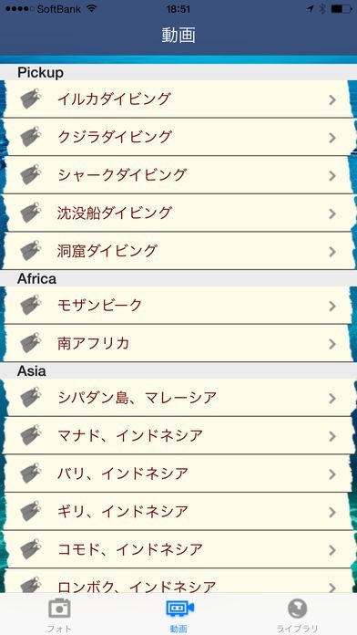「スキューバダイビングワールド」には、世界中の海の写真や動画が掲載されています。確認したい場所を自分で選択できるため、実際に行っているような感覚で楽しむことができます。